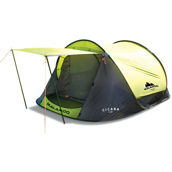 The Cicara 2.0 is just as quick as the Cicara 1.0, but includes extra space, a vestibule for shoes and gear and an awning for you to sit under. The Cicara 2.0 is perfect for a couple; a camping double mattress easily fits inside and the dual skin construction encourages airflow for a great night's sleep.