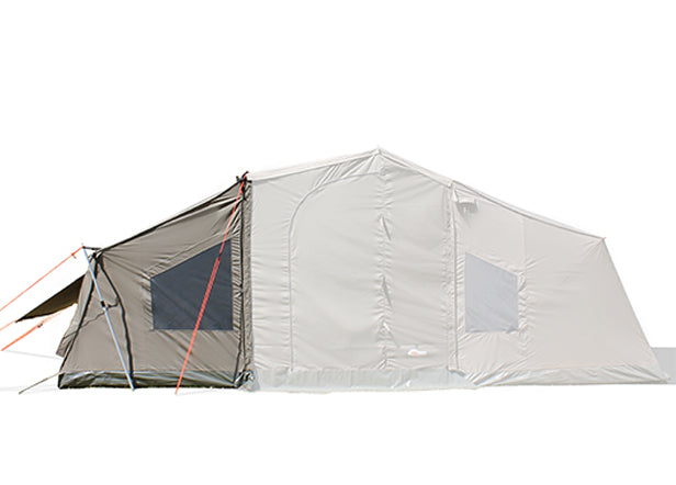 Extend the living space of your Oztent with The Tagalong Tent. The Tagalong tent zips to the awning of your Oztent to form a second tent. Made from high-quality, waterproof, 8-ounce Ripstop Polycotton Canvas and a heavy-duty, heat-sealed PVC floor. All Oztents are made with guaranteed waterproof material and are covered by a full 2 year warranty. It comes with side and rear windows and zippered power inlet. All necessary poles, pegs and ropes are included in a heavy-duty carry bag.